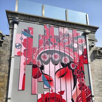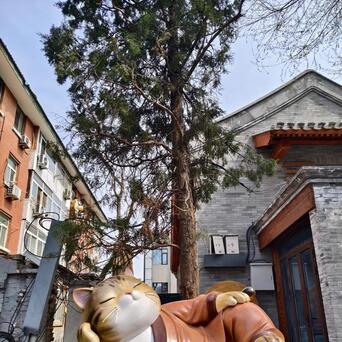 这条胡同保留着老城原本的风貌。绍兴会馆坐落其间,鲁迅曾在此居住七年,写下《狂人日记》。朱漆大门、青砖墙,细节中沉淀着历史记忆。沿途可见京剧脸谱猫涂鸦,融入了传统戏服元素!