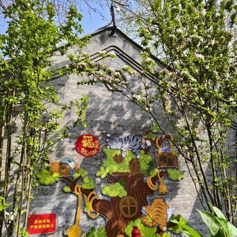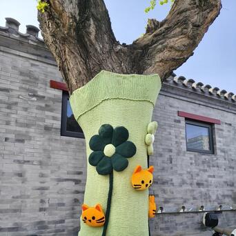 这条胡同不长,但细节做得用心。有一棵穿着彩色毛衣的树,多巴胺配色很吸睛,旁边还藏着一个小秋千,沿路的壁画和街角的小咖啡店,都适合停下来拍两张!